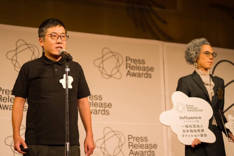 弊社代表の八木が一般社団法人日本福祉医療ファッション協会の広報として、プレスリリースアワード2025のインフルエンス賞の授賞式に参加しました。